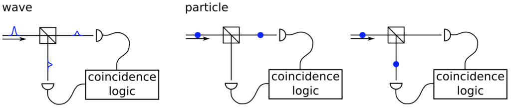 Dacă fotonul s-ar putea diviza (sau dacă nu am avea fotoni individuali heralded), am observa multe coincidențe triple (3-fold coincidences) între declanșator și ambele detectoare de după separatorul de fascicul. Acesta nu este cazul:
