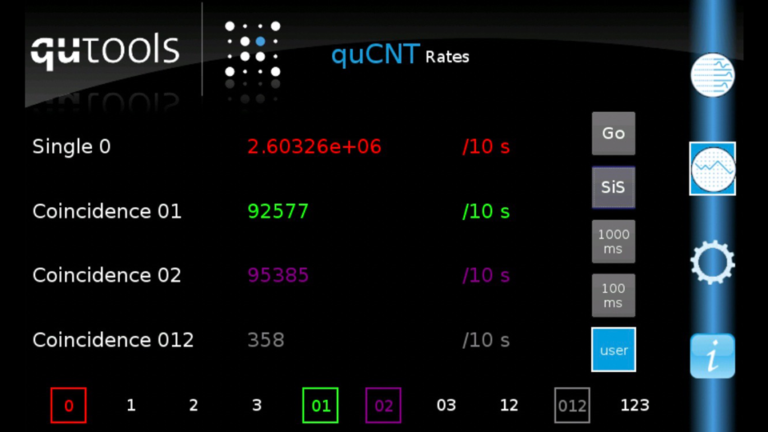 In acest caz, analizăm coincidențele duble (two-fold coincidences) dintre declanșator și detectoarele de după separatorul de fascicul. Acestea sunt evenimentele (heralded) de foton individual.